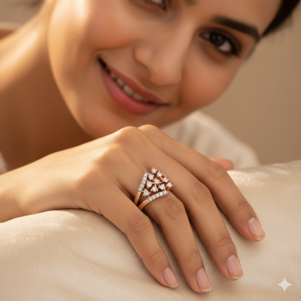 Ideal for festive wear or standout occasions, this natural diamond ring is a symbol of modern glamour and timeless royalty.