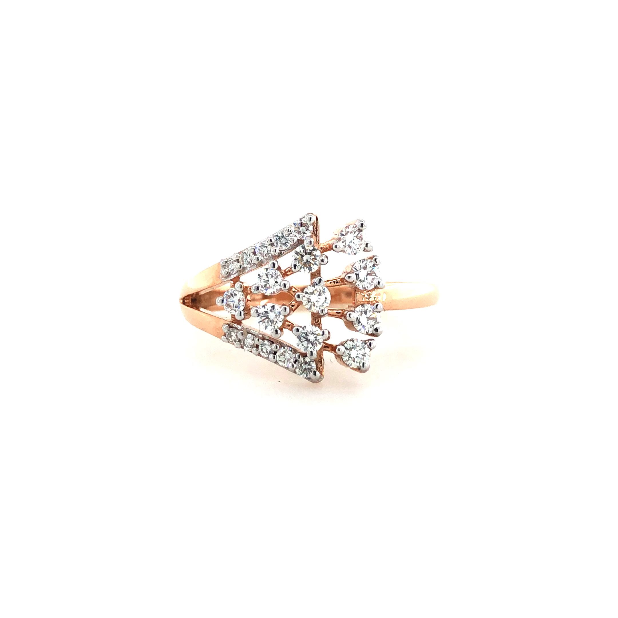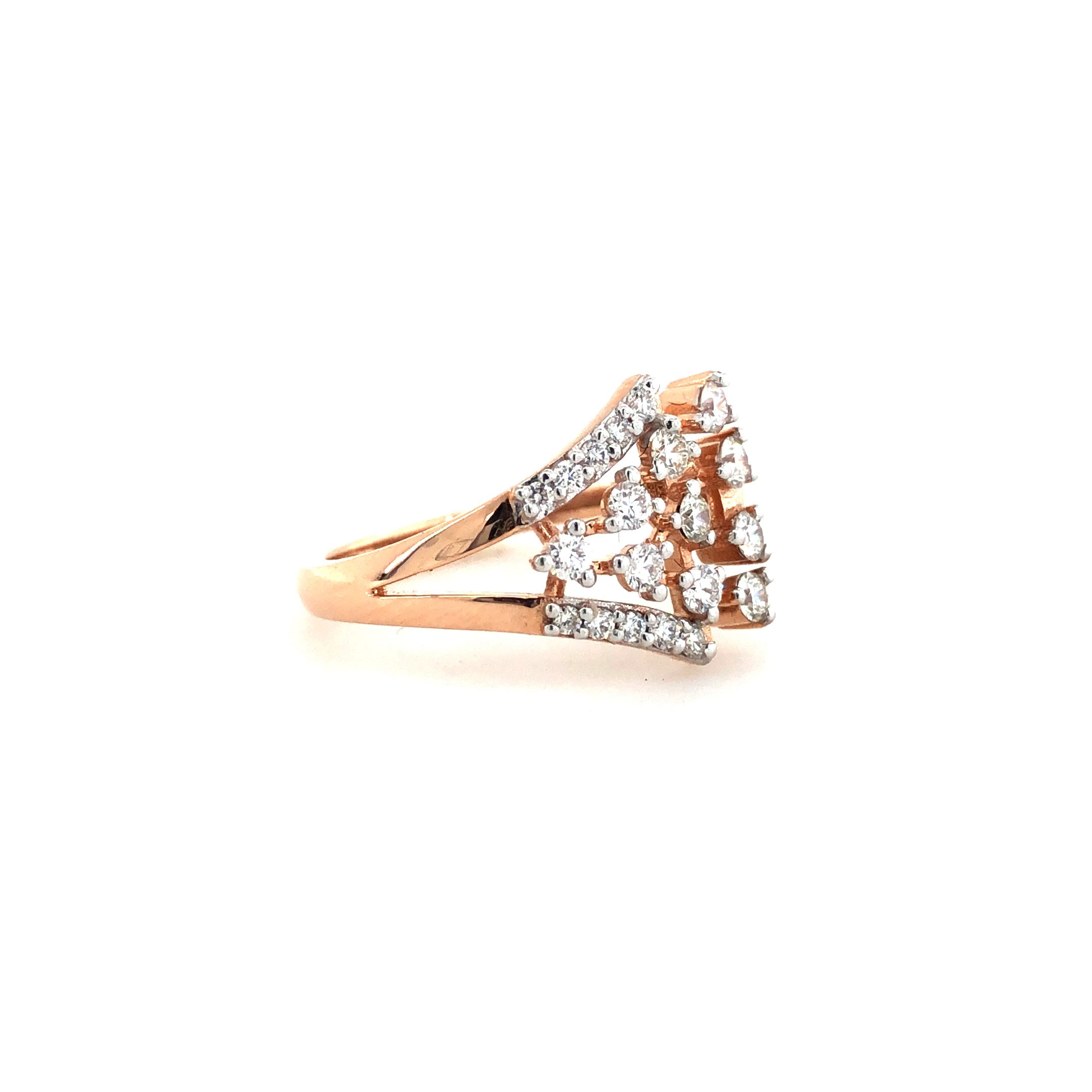 Command attention with the bold elegance of the Radiant Crown Diamond Ring, crafted in lustrous 14K rose gold. Designed to dazzle, this unique fan-shaped silhouette is adorned with 20 natural diamonds of EF-VVS quality, offering a luxurious 0.45 carat total weight. With a solid gold weight of 2.540 grams, this statement ring perfectly balances sparkle, strength, and sophistication.
