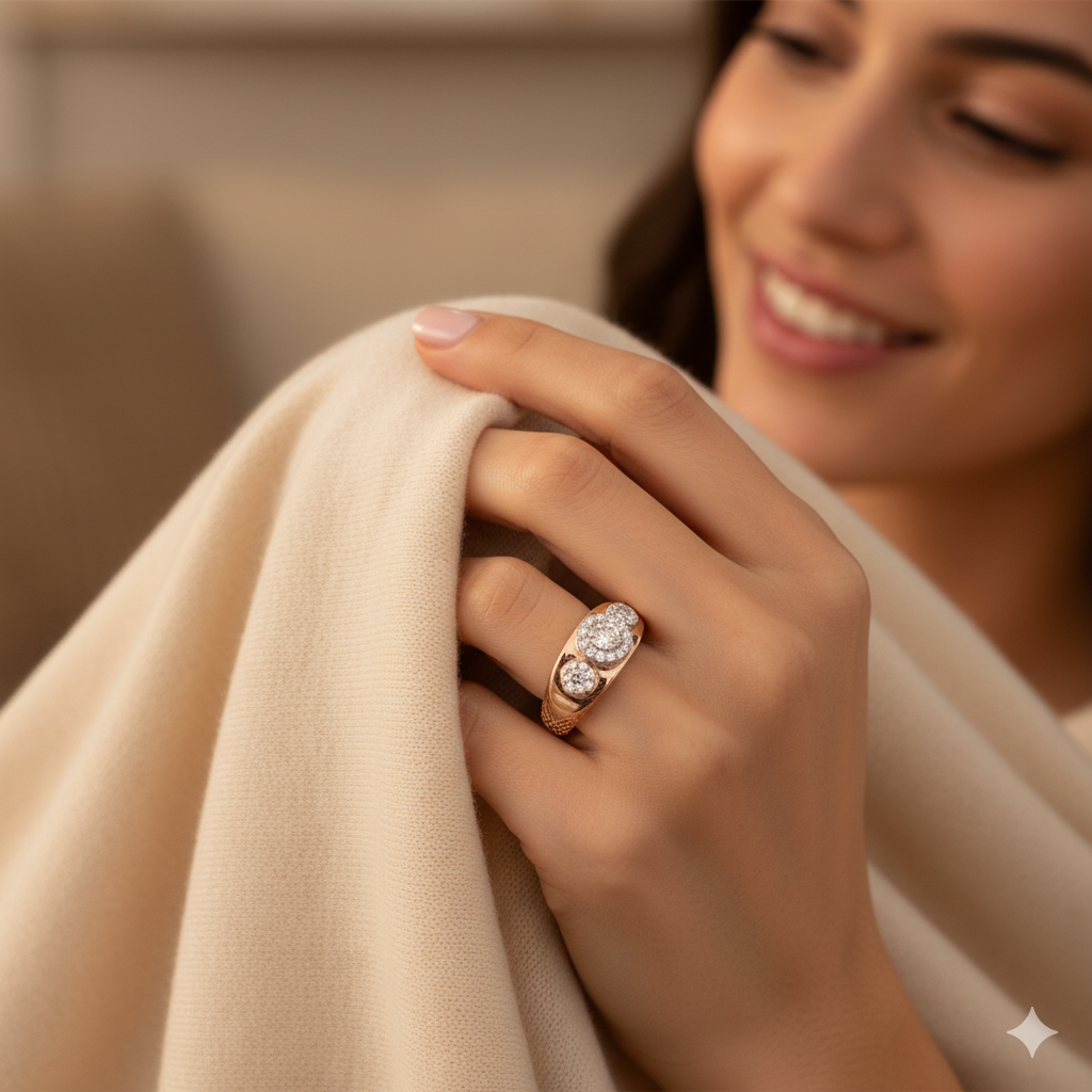 Turn heads with this exquisitely crafted Rose Gold (14K) ring, designed for those who cherish luxury with a touch of modern flair. Featuring a stunning triple diamond cluster centerpiece, this ring sparkles with 38 real diamonds of E+ VS+ quality, offering brilliance and clarity that’s second to none.