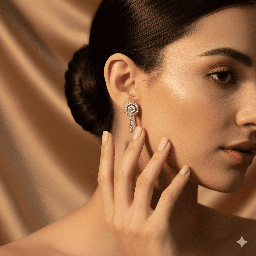 Add a touch of brilliance to your look with these Celeste Halo Diamond Earrings, masterfully crafted in warm 14K rose gold. Adorned with 62 natural EF-VVS quality diamonds totaling 0.36 carats, these earrings feature a radiant round halo design that symbolizes elegance and timeless charm. With a sleek drop silhouette and micro-pavé detailing, they offer the perfect blend of sparkle and sophistication. Lightweight at just 2.38 grams, these rose gold diamond earrings are ideal for both everyday glam and special occasions.