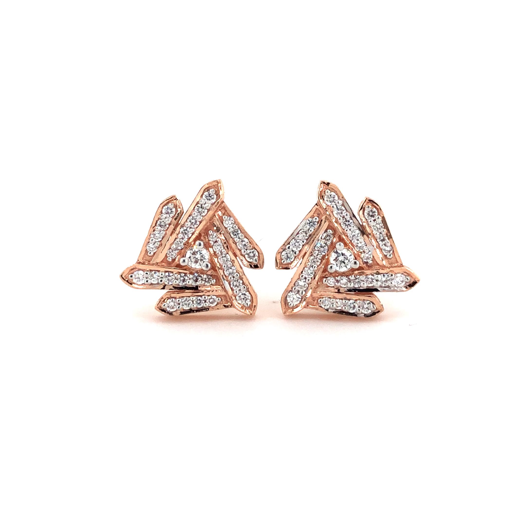Elevate your modern jewellery collection with our Geometric Glint Diamond Stud Earrings, a bold fusion of symmetry and sparkle. Meticulously crafted in 14K rose gold, these statement studs are encrusted with 62 natural diamonds, boasting a total carat weight of 0.35. The clean, angular lines offer a geometric flair, enhanced by high-quality EF-VVS clarity diamonds for brilliant shine. Weighing just 3.090 grams, this hallmarked pair perfectly balances contemporary edge with refined elegance—ideal for trendsetters and style enthusiasts alike.