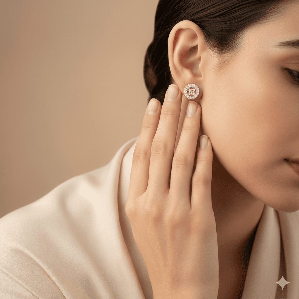 A beautifully crafted pair of round diamond stud earrings, designed to add timeless elegance and brilliance to any jewelry collection. Made with 18K yellow gold, these earrings feature high-quality diamonds that sparkle with exceptional clarity, making them perfect for both everyday wear and special occasions.