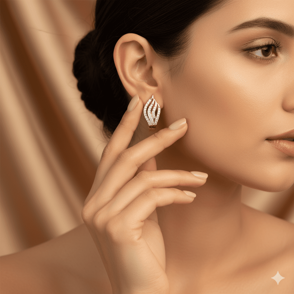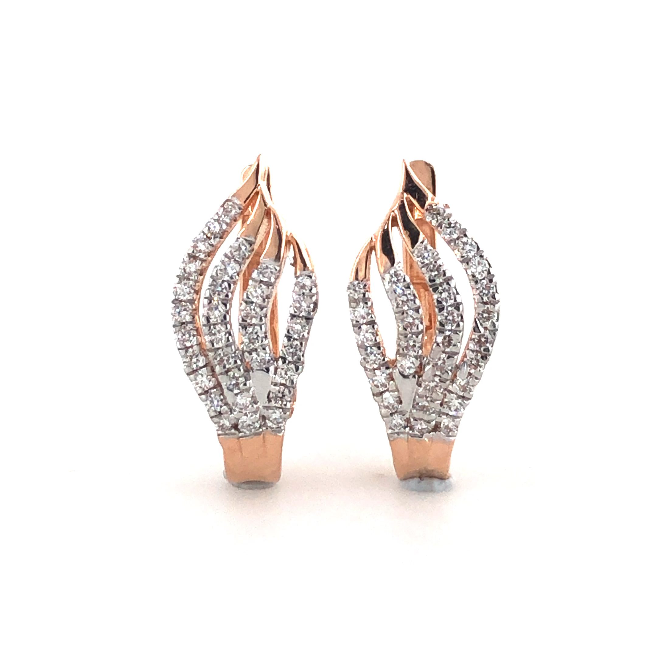 These captivating huggie earrings feature a unique swirl or wave-like design, adorned with 64 natural diamonds totaling 0.30 carats. Crafted in elegant 14K rose gold , the diamonds boast an exceptional EF-VVS quality, ensuring brilliant sparkle and clarity. Perfect for adding a touch of modern elegance and brilliance to any look, these natural diamond earrings are ideal for daily wear or special occasions.