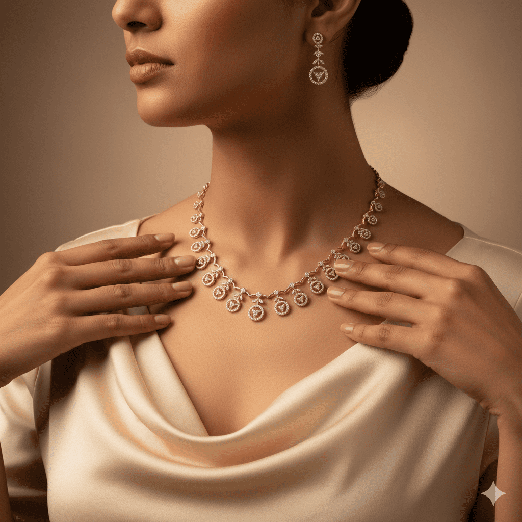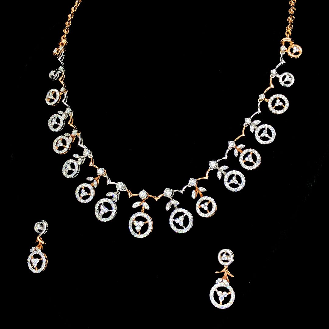 The intricate vine-inspired design symbolizes grace and beauty, making it a perfect choice for weddings, anniversaries, festive occasions, or as a thoughtful gift for someone special. With its brilliant craftsmanship and exceptional diamond quality, this rose gold diamond jewelry set is a statement of elegance that will shine for a lifetime.