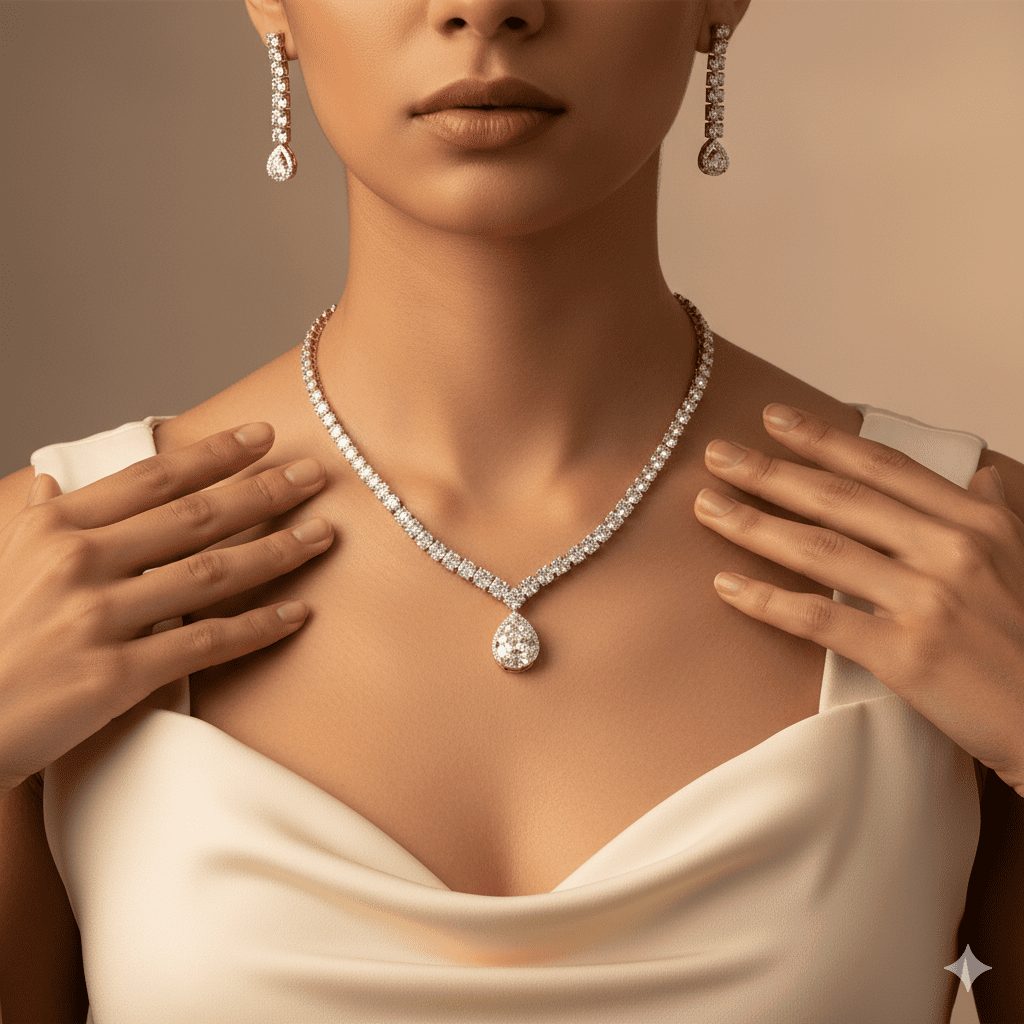 Elegant Teardrop Diamond Necklace & Earring Set