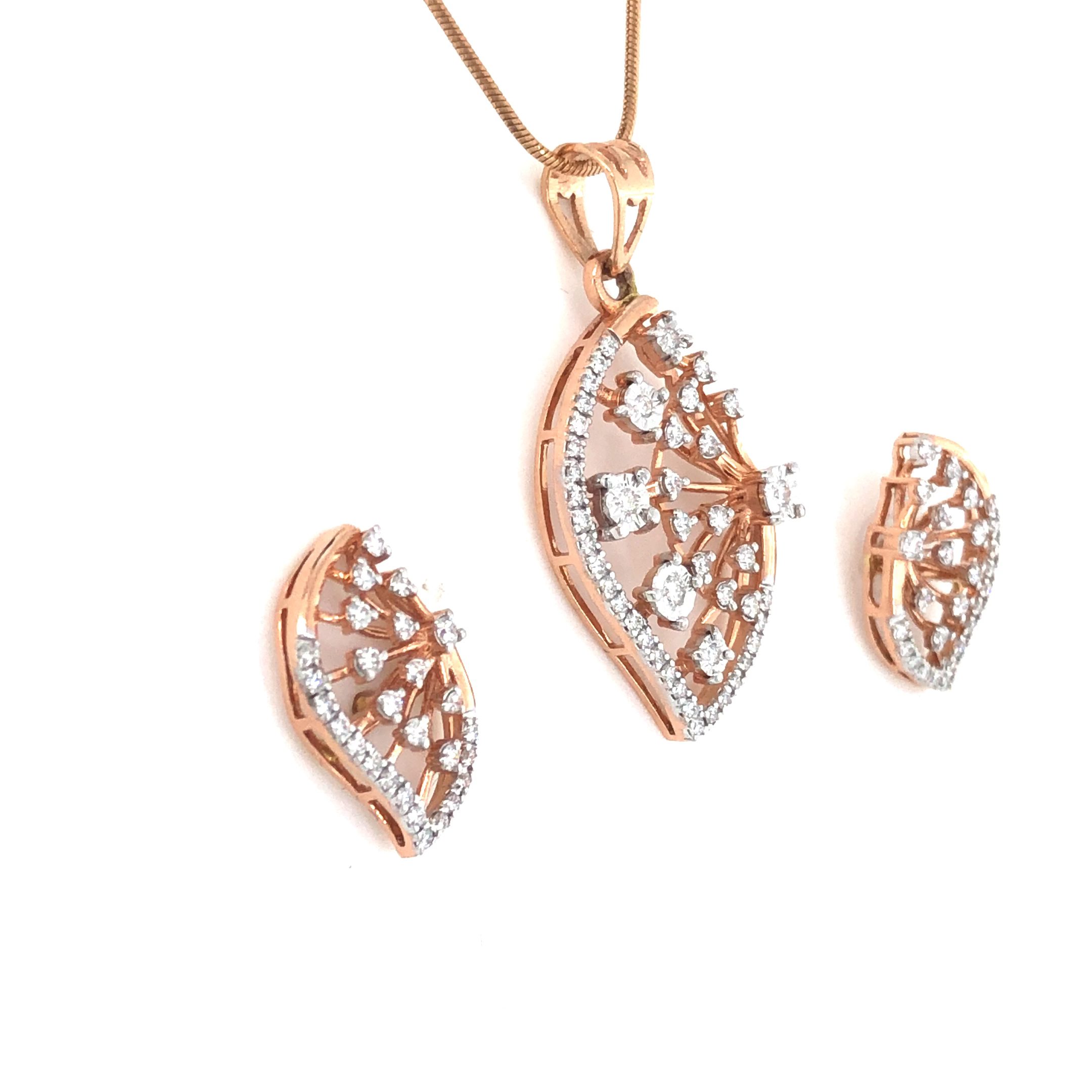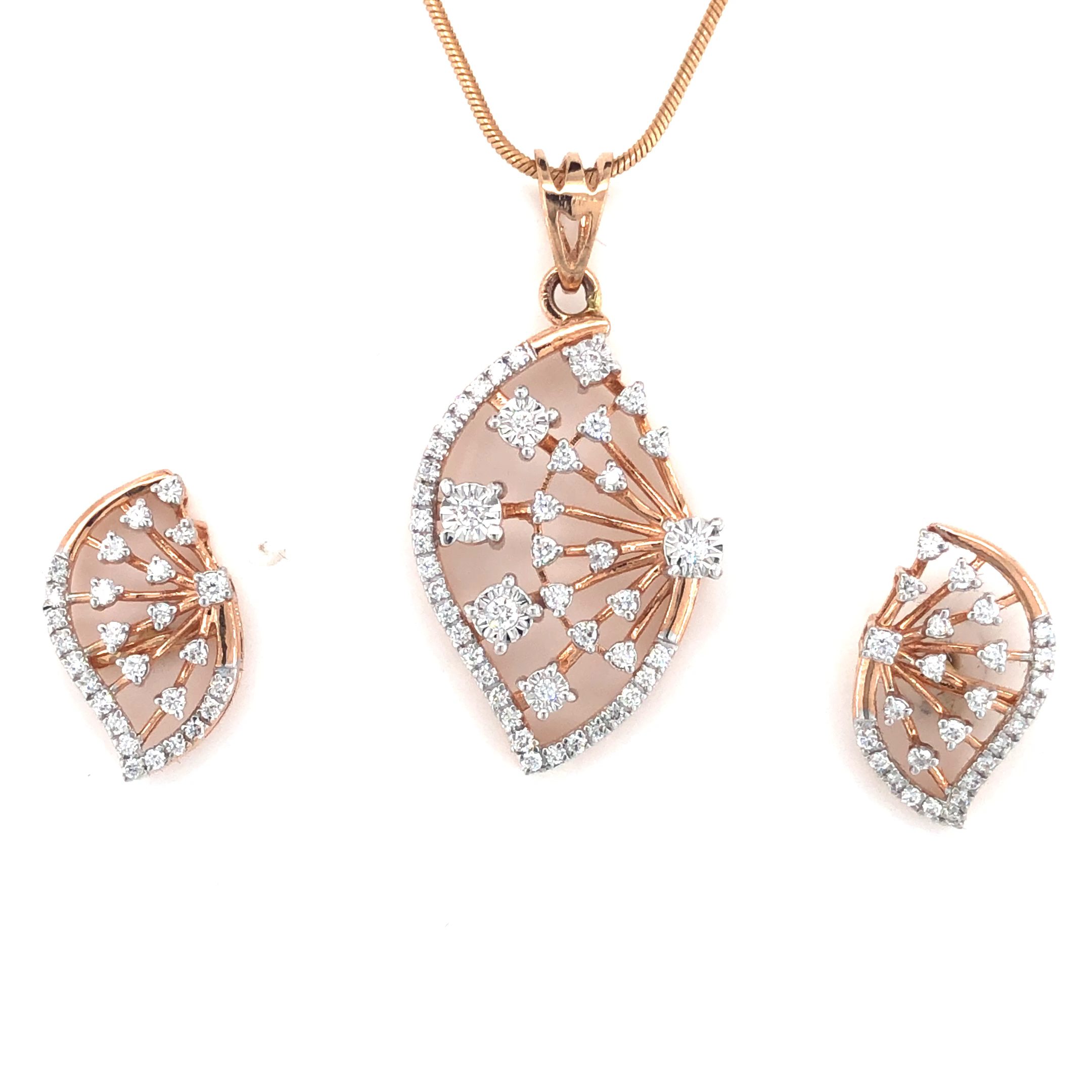 | Elegant Sunburst Fan Diamond Pendant & Earring Set | ||