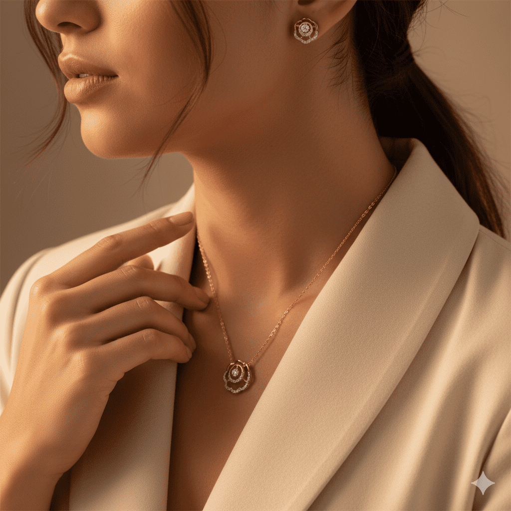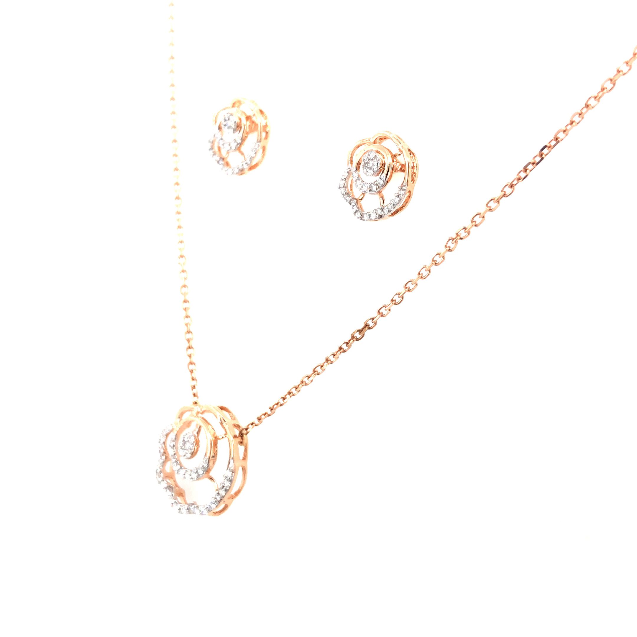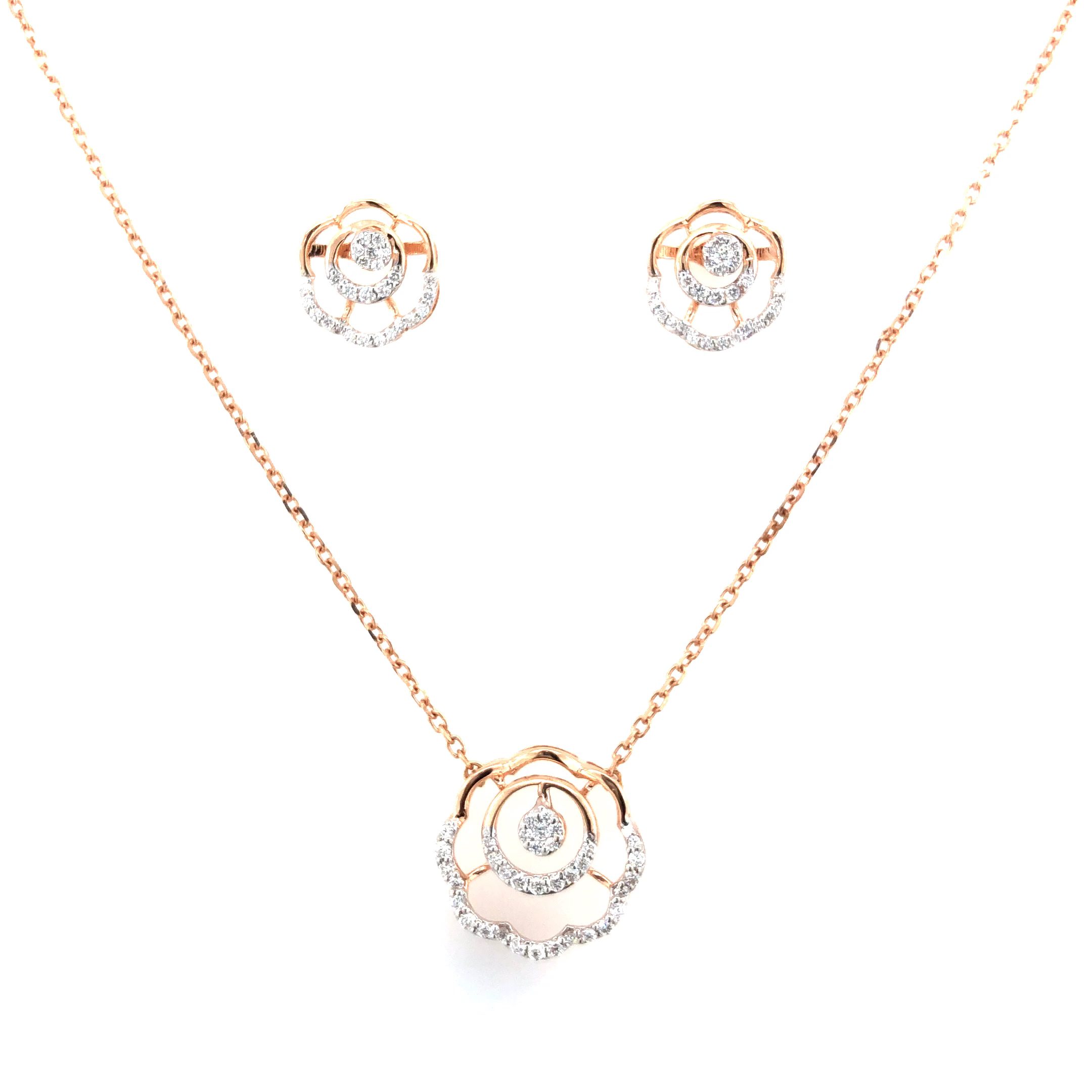 Rose Bloom Diamond Pendant Chain & Earring Set